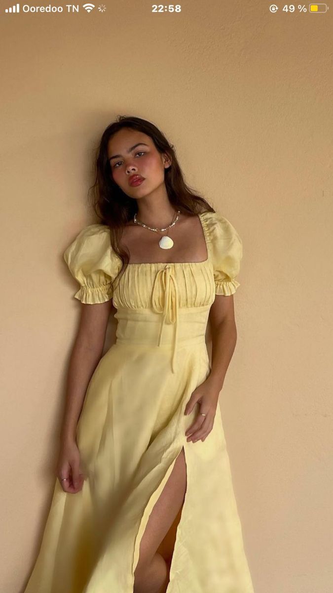 Light Yellow A-line Prom Dress with Puff Sleeves HZ1022